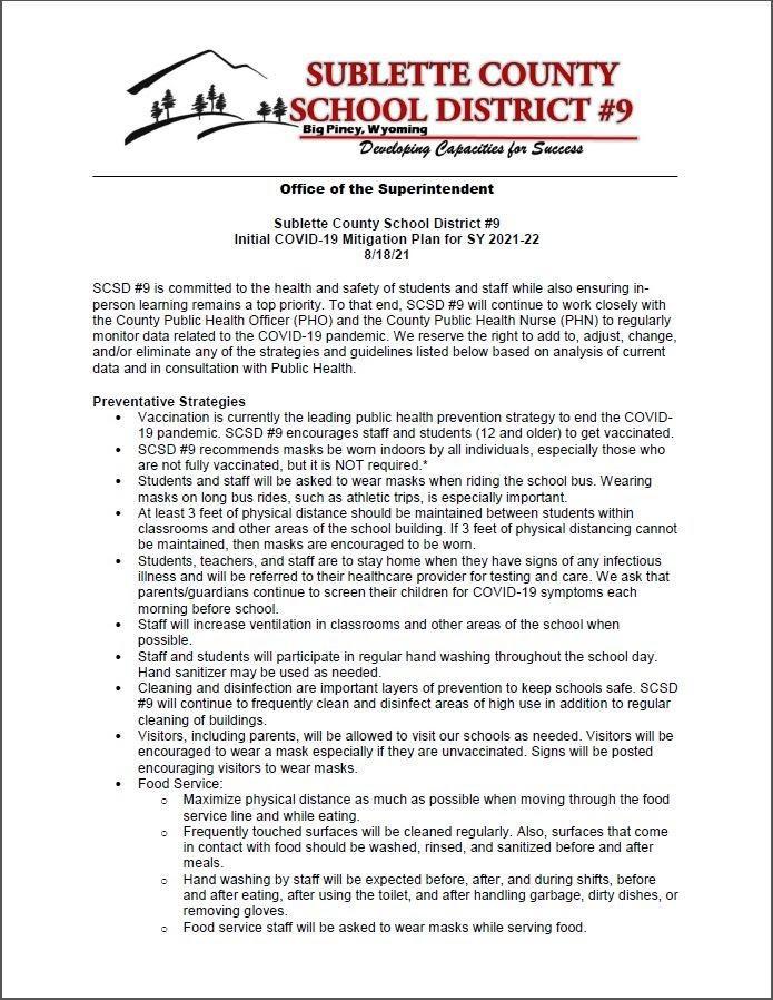 Please See the 2-page Initial COVID-19 Mitigation Plan Below Posted 8/18/21
